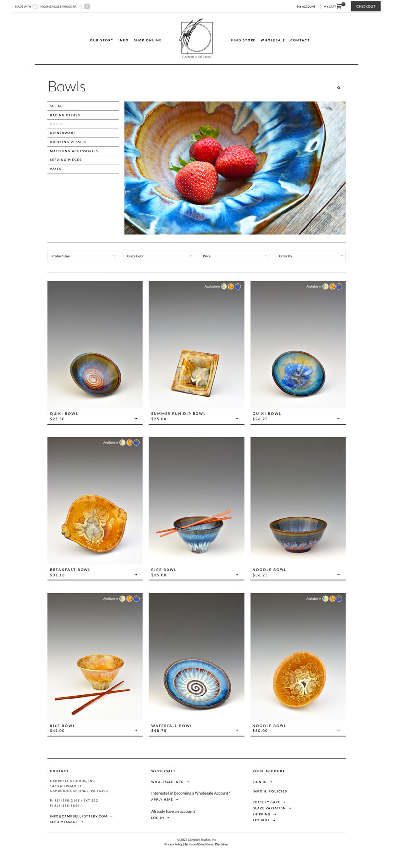 The main concept behind this online store was to get out of the way and let the pots do the talking. The beautiful glazes and the exquisite forms needed only a clean layout to shine.
