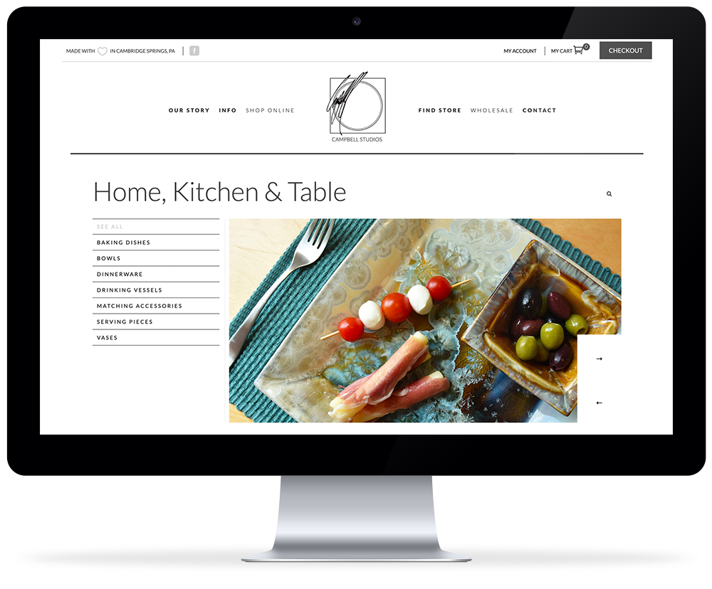 The main concept behind this online store was to get out of the way and let the pots do the talking. The beautiful glazes and the exquisite forms needed only a clean layout to shine.