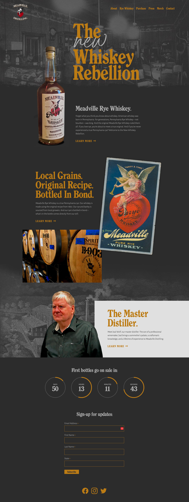 After getting their hands on the original Meadvile Rye Whiskey recipe, Meadville Distilling knew they needed a website to raise awareness and bring the historic brand back.